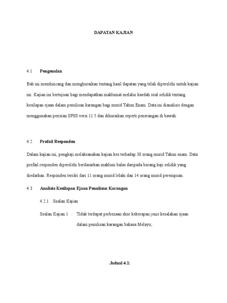 Contoh Dapatan Kajian Ctu152 Boleh Refer Bab Empat Analisis Dan Dapatan Kajian 4 Pendahuluan Studocu