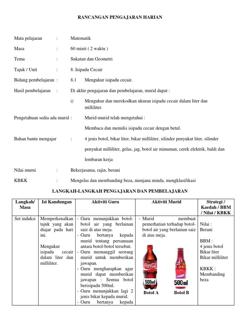 Rancangan Pengajaran Harian Tajuk Isipadu Cecair 1 Pdf